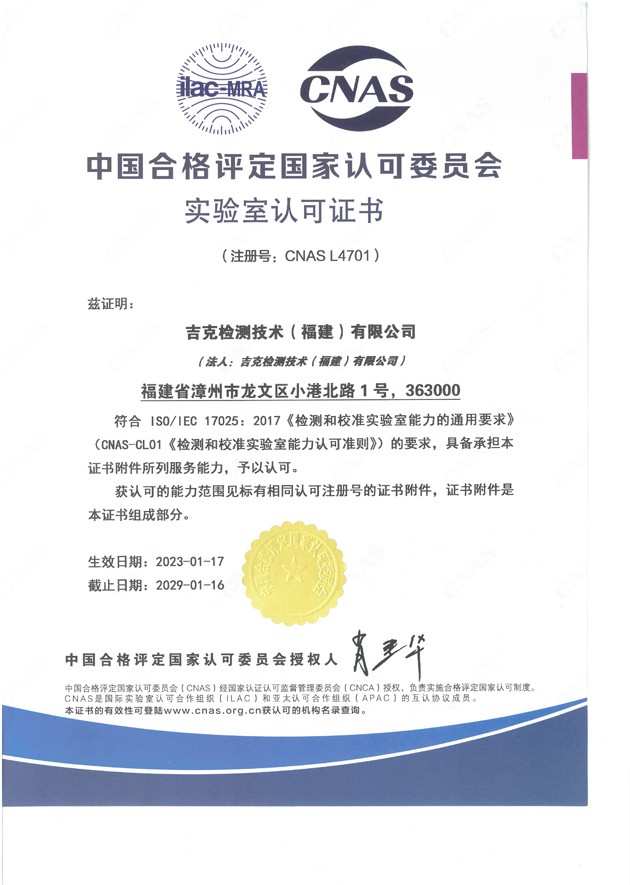 吉克檢測技術(福建)有限公司,位于福建省漳州市龍文區(qū)小港北路1號,于2019年8月注冊成立,是一家獨立的第三方檢測公司。公司已經(jīng)通過檢驗檢測機構計量認證(CMA)、農(nóng)產(chǎn)品質量安全檢測機構資質認證(CATL),獲得中國合格評定國家認可委員會(CNAS)認可。公司本著“嚴謹、規(guī)范、高效、協(xié)作”的原則和對客戶及社會高度負責的精神,充分利用本公司優(yōu)質的檢測環(huán)境、先進的檢測設備和專業(yè)的技術人員,第一時間為客戶提供科學、公正、準確的檢驗檢測報告。 公司實驗室面積1100多平方米,儀器設備兩百多臺(套),固定資產(chǎn)一千多萬元,在職員工31人,技術人員中的中高級職稱及同等能力人數(shù)占60%以上。我們的服...